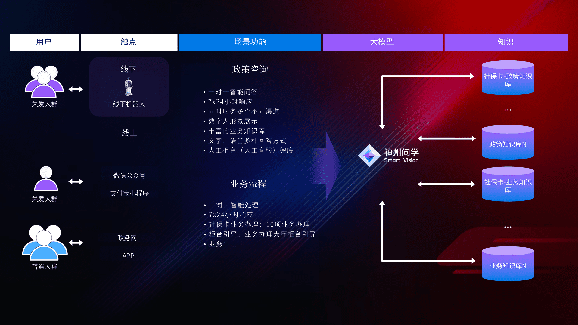 • 线上线下全覆盖:线上提供微信公众号、、支付宝小程序、、、政务网、、、、app多种渠道,,与线下机器人形成完整服务体系。。